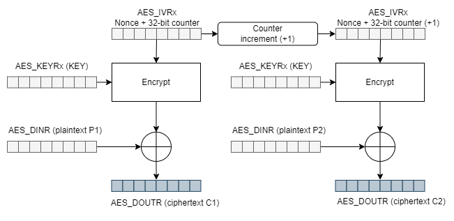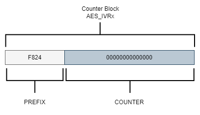 • (AES_IVRx): In CTR mode, the initialization vector is also referred to as the counter, which we will identify as the Nonce.
